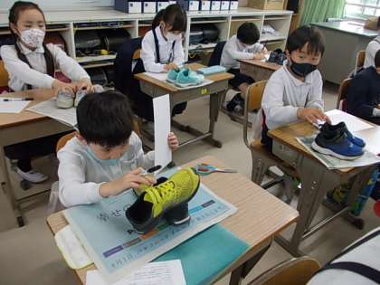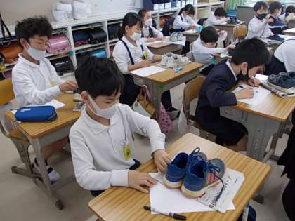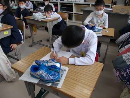 自分のくつの写生に取り組んでいました。しっかり見て,ゆっくりゆっくりペンを動かします。集中して取り組んでいました♪