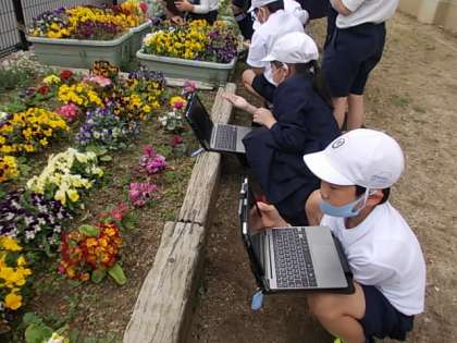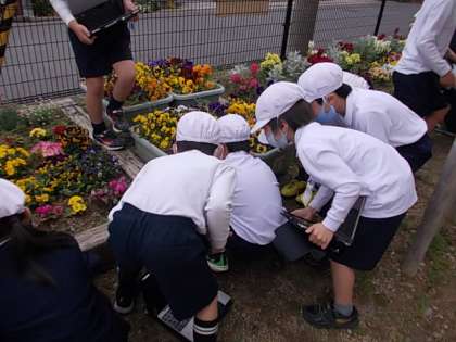 春はいろんな植物が芽吹き,色とりどりの花を咲かせます。そんな草花の様子を観察します。タブレットを使って写真も残しました。