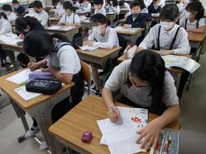 家庭科の学習が始まりました。家庭生活に必要な様々なことを学習します。目次を見ながら1年の見通しを共有しました。