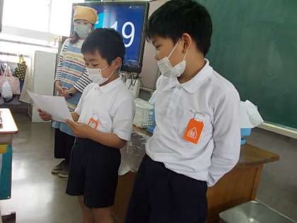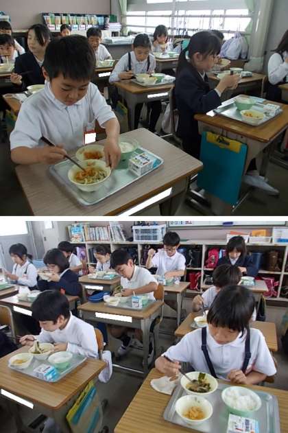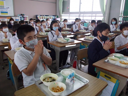 お待ちかねの給食の時間が始まりました。心を込めて「いただきます」