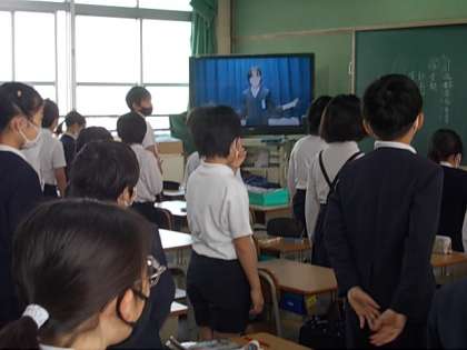 全校朝礼が始まりました。今日も代表委員の児童が司会や運営を務めてくれています。