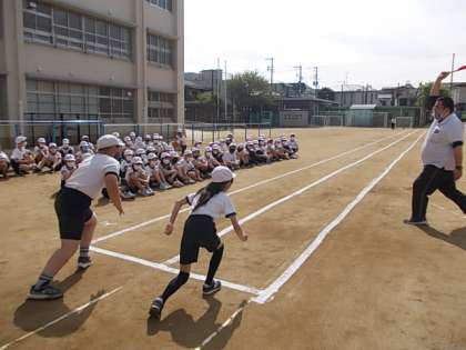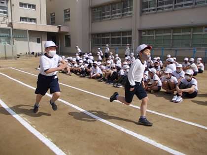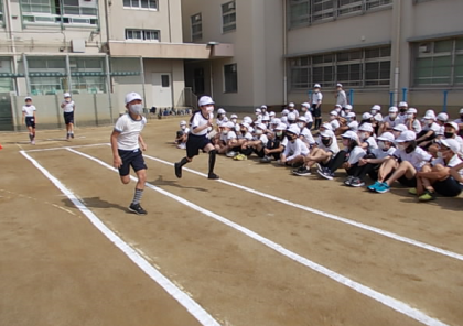 体育の学習が始まりました。まずは50m走の測定!力いっぱい走っていました♪