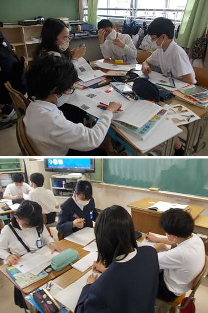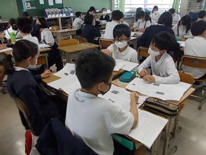 物語「帰り道」の学習です。2人の主人公,それぞれの気持ちについて考えていきます。グループで自分の考えを交流していました。
