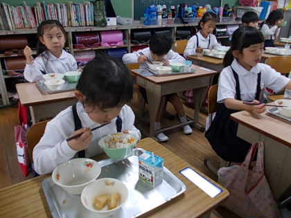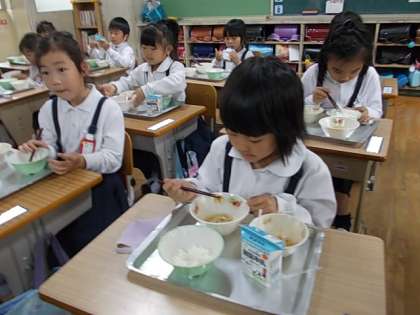 1年生のみなさん,小学校の給食,どうですか。おいしいでしょ♪