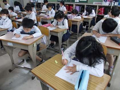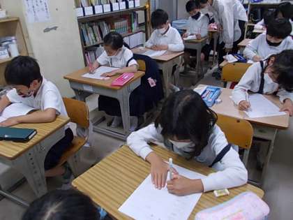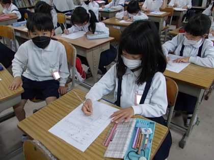 学校にあるいろんな部屋や道具について,1年生に紹介します。校長室ってどんな部屋ですか。理科室って何をする部屋ですか。音楽室には何がありますか。いろんな視点から,知っていることをまとめていました。わからないことはこれから調べていきましょう。