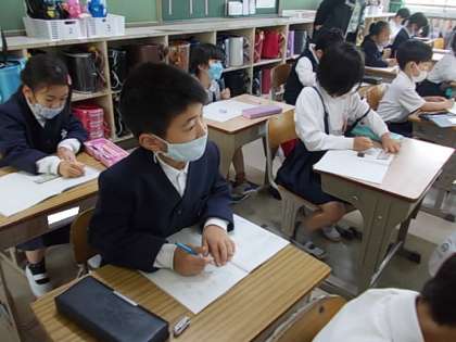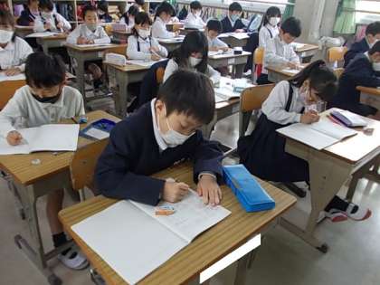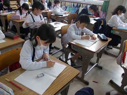 たし算の筆算に取り組んでいます。2けたの数をたし合わせます。みんな,一生懸命,練習問題に取り組んでいました。