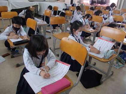 「花たばをあたなに」の学習が始まります。まずはお手本を聴き,イメージを深めました。思いを込めて歌います。どんな思いを込めればいいかな。