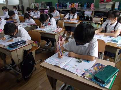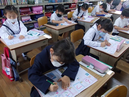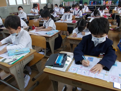 今日はひらがな「か」を学習しました。バランスがとってもむずかしいひらがなですね♪みんな集中して練習していました。