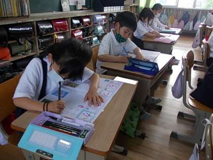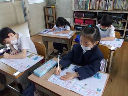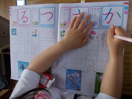 今日はひらがな「か」と「さ」の学習をしました。どちらもバランスがむずかしい字ですががんばって練習しています。