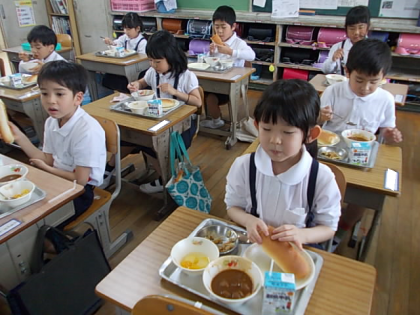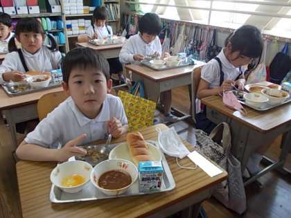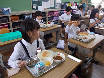 おしゃべりなしの給食です。しばらくはみんなで協力してね♪