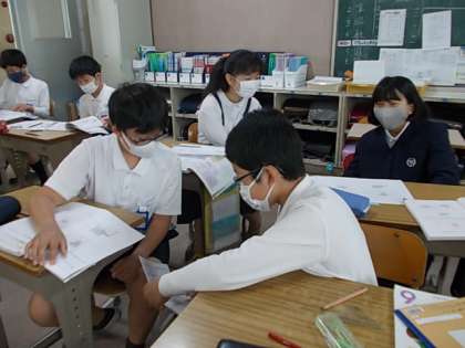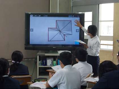 点対象図形の書き方についてみんなで話し合っていました。いくつかの方法が考えられそうです。自分の考え方を交流しあっていました♪