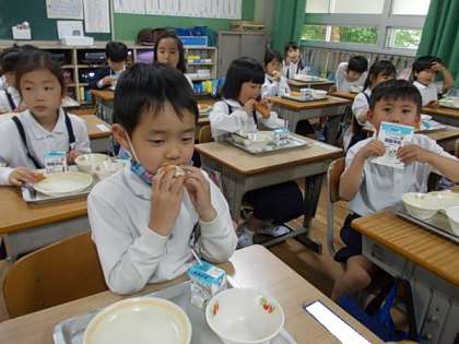 給食の時間が始まりました。今日もおいしくいただきましょう♪