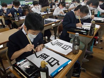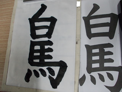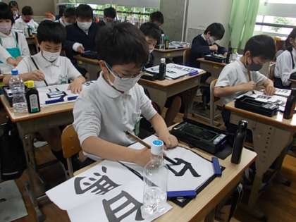 今日は毛筆で「白馬」に挑戦しました。2つの字のバランス,「馬」の点の打ち方等がポイントとなります。みんな集中して取り組んでいました♪