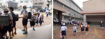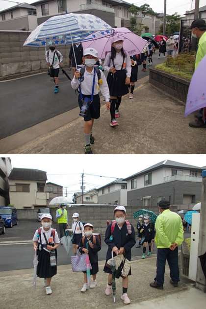 小雨が降ったりやんだりする中での登校です。気温的には非常に過ごしやすい朝です♪