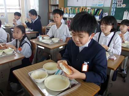今日のパンはミルクパン。いつものパンよりしっとりしています。ミルクパンもおいしいね♪