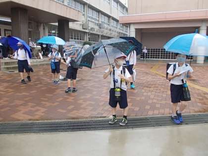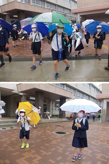 傘を差しながらの下校です。みんな。いつも以上に安全に気を付け下校してください♪
