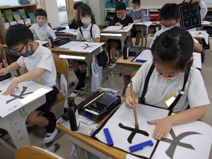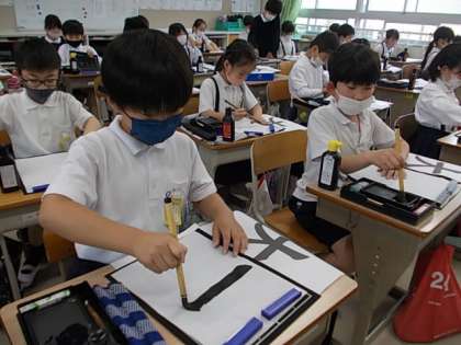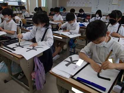 今日は,「大」を書きます。前回の「一」に加え,左右へのはらいがあります。ゆっくり筆を動かし,丁寧に書けていました♪