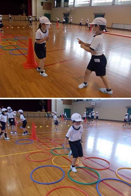 今日は忍者修行を行いました。砦の主と忍者じゃんけんをします。勝てば進めますが負けるとひとつ前の砦から再スタートです。みんな生き生きと活動しています♪