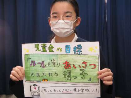 「ルールを守り,あいさつのあふれる榎っ子」です。みんなでよりよい学校づくりを進めていこうね♪