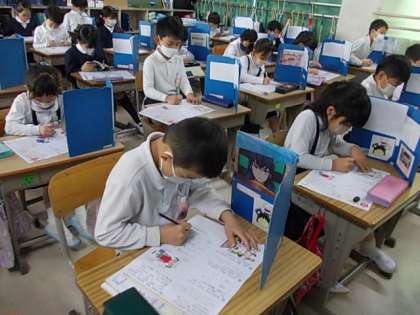 国語のテスト,集中して取り組んでいました。みんながんばって!
