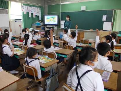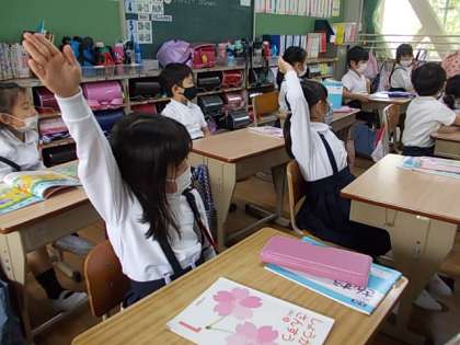 順番と数のちがいについて学習しています。授業のはじめに,その振り返りです。「前から3列目の人手を上げましょう」