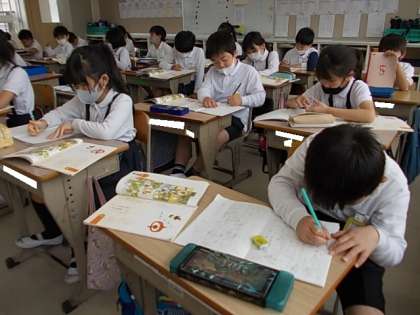 教科書のイラストを参考に,宝物を探しに出かけた男の子について,物語を作ります。もちろんこれまで学習した漢字をたくさん使います。おもしろい物語ができあがりそうです♪
