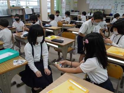 地図記号カードを使って,ペアでゲームを楽しんでいました。楽しく学習すると,頭に残りやすいそうです。