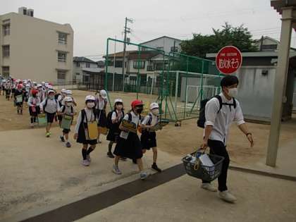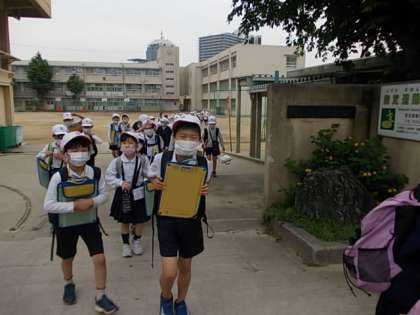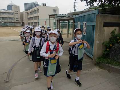 東門から出発です。みんな,行ってらっしゃい♪