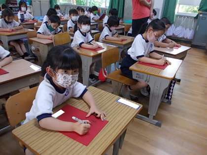 音読カード作成中!これから1年生が終わるまで使用するカードです。大切に使おうね♪
