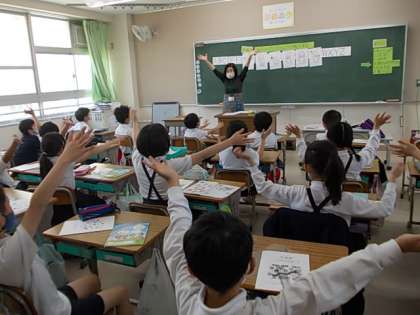 英語での会話には欠かせない「How are you?」「I'm …」の表現をみんなで楽しく学習していました。