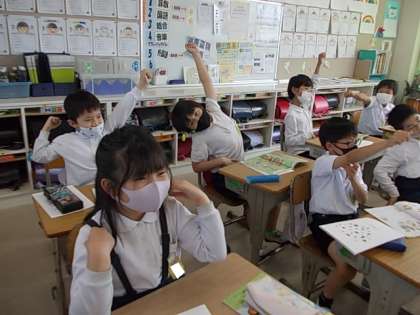 「How are you?」ゲームで盛り上がっていました。みんな,ノリノリです♪