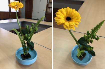 昨日の華道クラブの作品を子どもたちが届けてくれました。とっても素敵な作品です♪