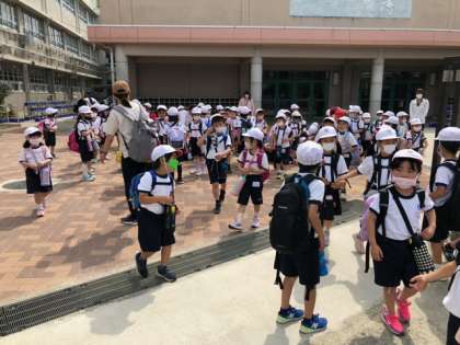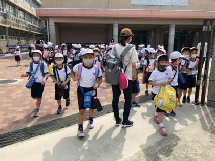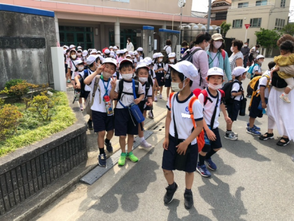 1年生の子どもたちが下校していきます。家でゆっくりして,今日の疲れを抜くようにしてくださいね♪