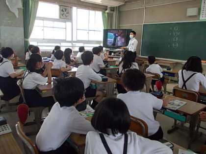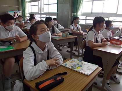 しばらくの間,家庭科の先生が変わります。新しい先生の自己紹介を聞いています。みんないい表情しています♪