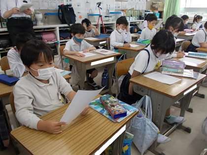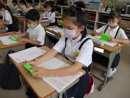 校外学習の予定表が配られました。しかし,この予定表には時刻が書かれていません。みんなで出発から何分後につくかを考えながら時刻を埋めていきました。