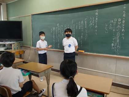 今月の生活目標「目を見てあいさつをしよう」を振り返りました。個人として,クラスとして今後もがんばっていくことを考えていました♪