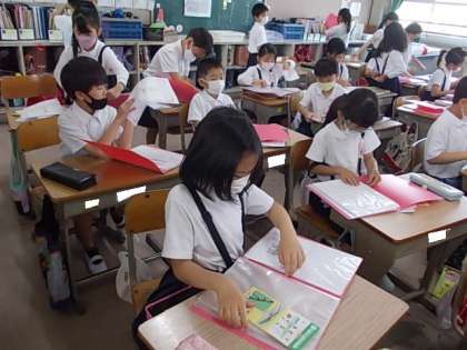 生活ファイルの整理中です。まだ2年生が始まって2か月ですが,たくさんのワークシートを仕上げてきました。大事につづっていこうね♪