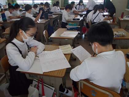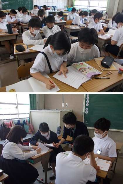 文字を使った式を作ってみよう。いろんな問題に取り組み,グループで交流していました。