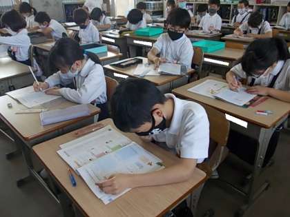 折れ線グラフの学習です。グラフ下部に横向きで波線が2本書かれています。どんな意味なのかな。しっかり使いこなせるようにしようね♪