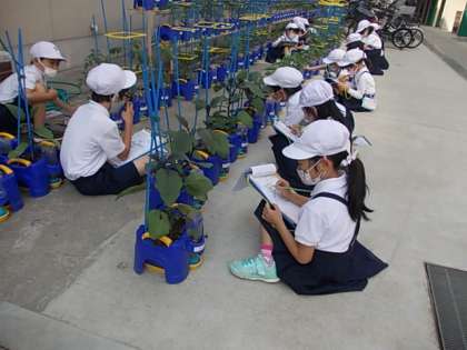 心を込めて育てている夏野菜の観察です。一日一日,変化が見られます。