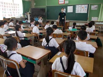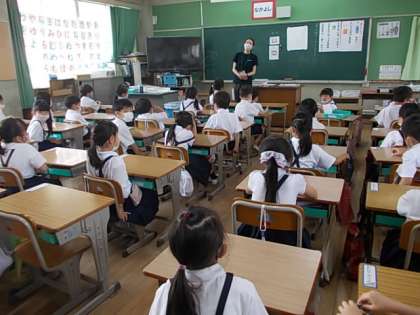 5月26日(木) 1年生朝の会「いい姿勢でお話を聞いています」♪