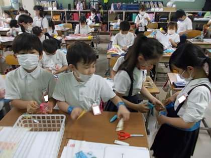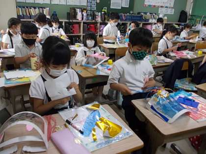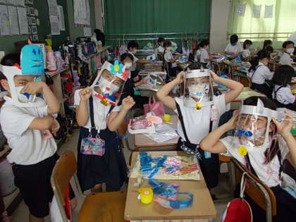 5月26日(木) 2年生図工「キラキラフェイスガード作成中」♪
