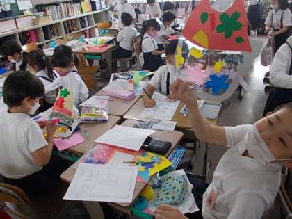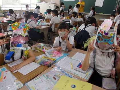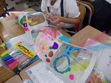 5月26日(木) 2年生図工「キラキラフェイスシールド作成中」♪