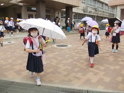 ぽつぽつと雨が落ちてきました。本降りにならないうちに帰ろうね♪