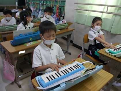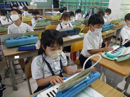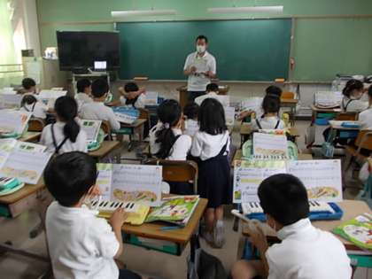 「しあわせのうた」を練習しています。まだまだクラス半分ずつで音を出している状況ですが,音を出さない時も指でしっかり練習しています♪