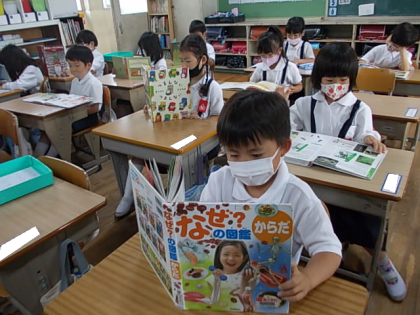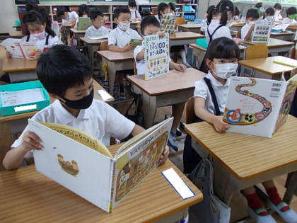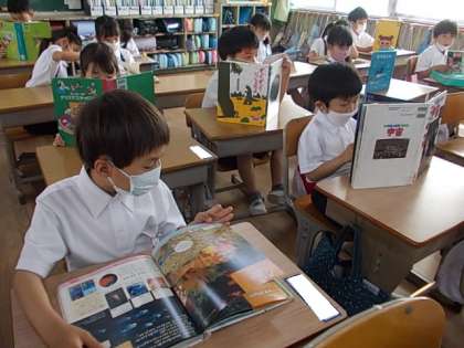 1年生は読書タイムです。みんな,いい表情で本に向き合っています♪