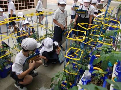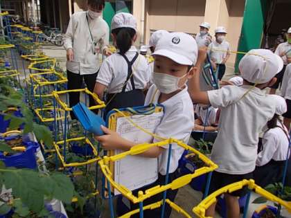 夏野菜の観察日記をつけています。みんな,心を込めて育てている夏野菜ですので,観察にも力が入っています♪