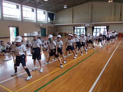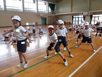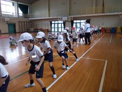 新体力テストの反復横跳びの測定に取り組んでいました。俊敏性をはかるテストです。みんな忍者のようにがんばっていました。