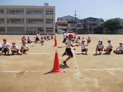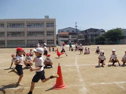 3年生かけっこの学習です。「ターゲットかけっこ」ゲームの中で学びます。今日はこのゲームのルールを覚えて,しっかり楽しむことがめあてです。みんな,いい表情で取り組んでいました♪