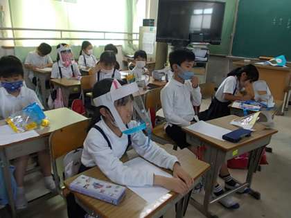 6月2日(木) 2年生図工「変身フェイスシールド発表会を行いました」♪
